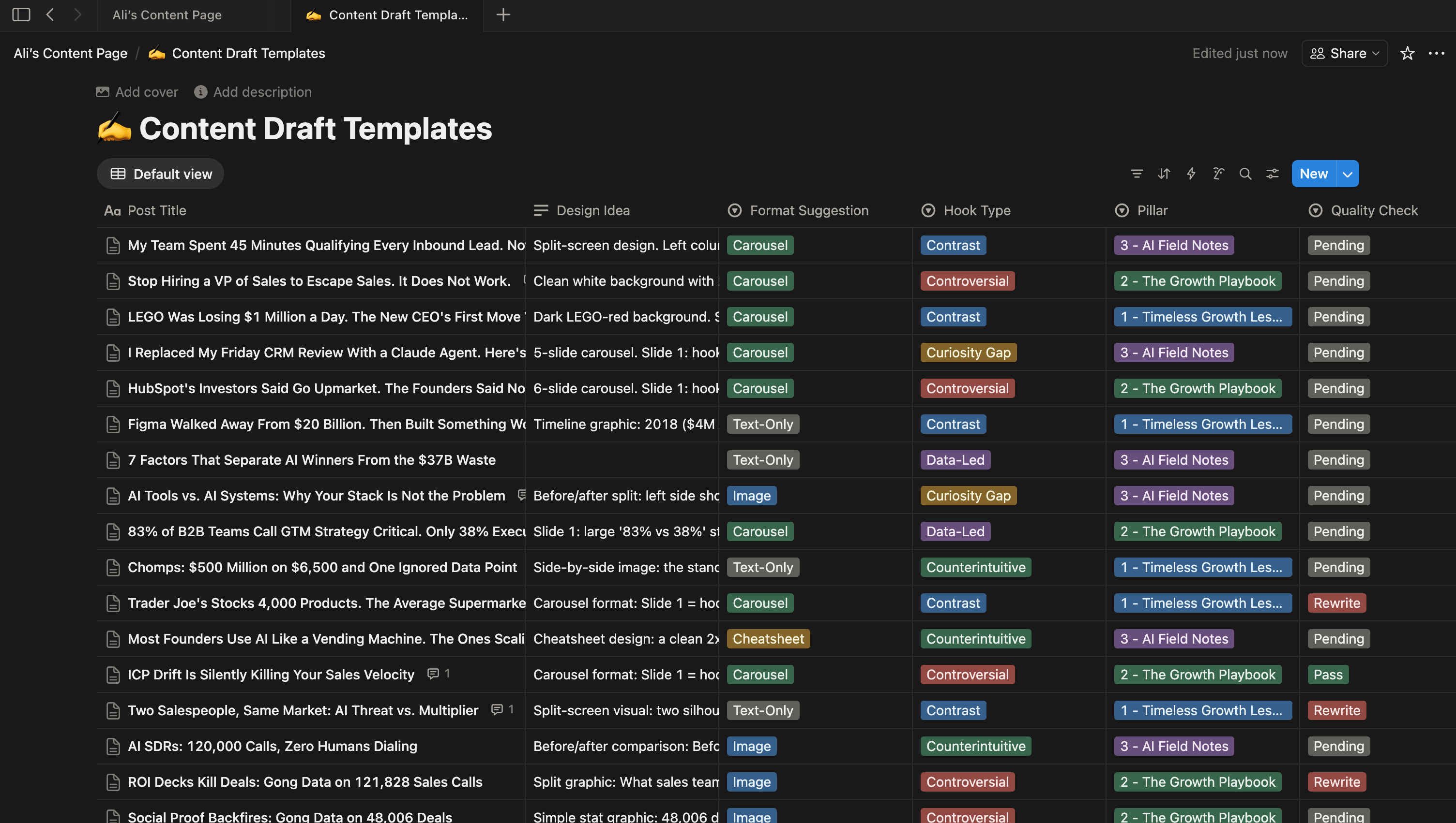 By Monday, a week's worth of vetted ideas and draft outlines already waiting for me. No blank page. Just pick, review, and start writing. Here is exactly what it looks like.
