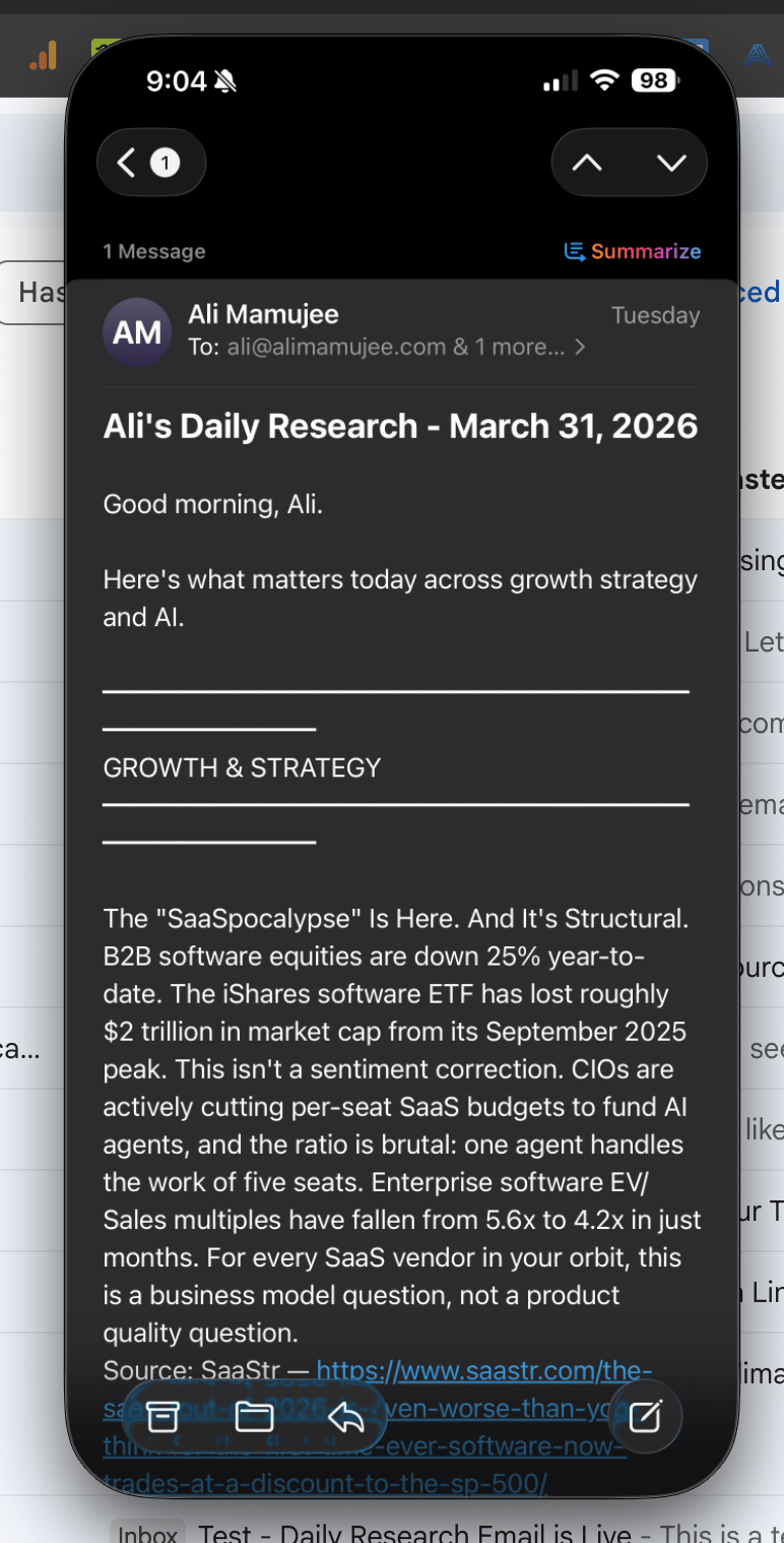 Now, every morning at 7am, a research briefing lands in my Gmail.